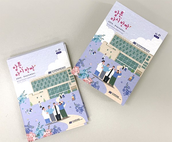 충남권역암생존자통합지지센터가 암 생존자와 가족들의 건강한 일상 회복을 응원하는 첫 소식지 『암튼, 다시 반짝』을 지난 9월 발간했다. ‘암튼, 다시 반짝’은 암 이후의 삶을 살아가는 모든 이들에게 다시 빛날 수 있도록 함께하겠다는 메시지를 담아, 충남권역암생존자통합지지센터의 진심 어린 응원과 다양한 정보를 전하는 매거진이다.