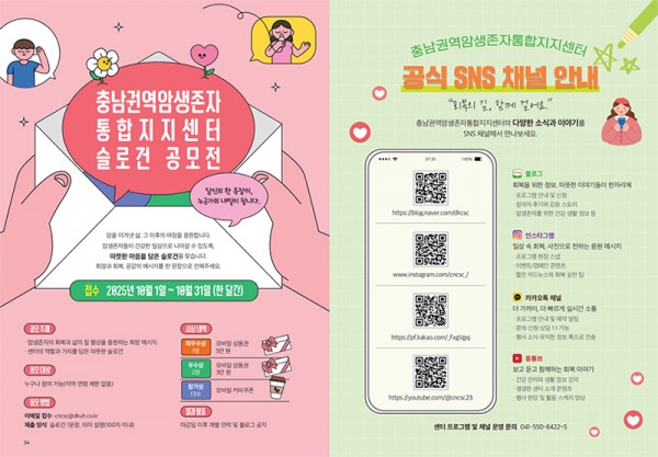 그 밖에도 소식지에는 암 생존자들의 건강한 식생활과 마음 돌봄을 위한 간단한 팁이 담겨 있으며, 마지막 장에는 센터 슬로건 공모전 소식을 통해 소소한 재미와 참여의 기회를 더했다. 암생존자통합지지센터는 SNS 계정 안내를 통해 언제든 환자와 센터 담당자간 소통할 수 있도록 했다.
