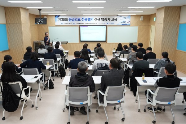 항공의료팀은 지난 4월 6일 암센터 하이브리드 교육실에서 ‘응급의료 전용헬기(이하 닥터헬기) 신규 탑승자 교육’을 실시했다. 이번 교육은 닥터헬기에 탑승해 의료행위와 운항을 담당할 의료진 및 관계자들이 항공의료라는 특수한 환경에 효과적으로 적응할 수 있도록 돕고, 탑승 의료진과 운항승무원, 지원인력 간 상호 직무 이해와 협업 체계를 강화하기 위해 마련됐다.