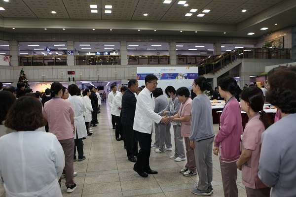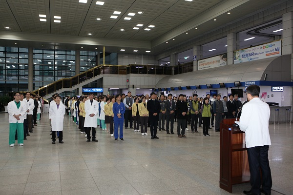 김재일 병원장은 신년사를 통해 “2019년은 진료와 교육, 연구의 역량 강화에 힘을 기울여 좋은 성과를 얻은 한 해였으며, 특히 암센터 착공 및 각종 진료실적의 향상 등 도약을 준비한 해”라며 지난 한 해의 주요 성과를 밝혔다. 이어 “어려운 여건 속에서도 병원 발전을 위해 한마음 한뜻으로 최선을 다해준 직원들의 헌신적인 노력에 감사드린다”고 말했다.