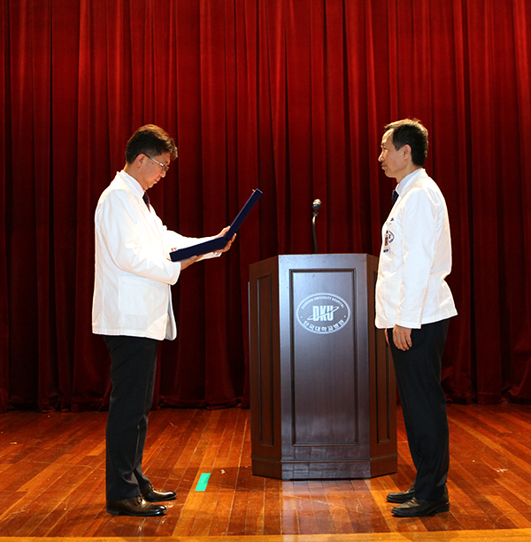 지난 1월 8일 5층 대강당에서 제11대, 제12대 병원장의 이·취임식이 진행되었다.
