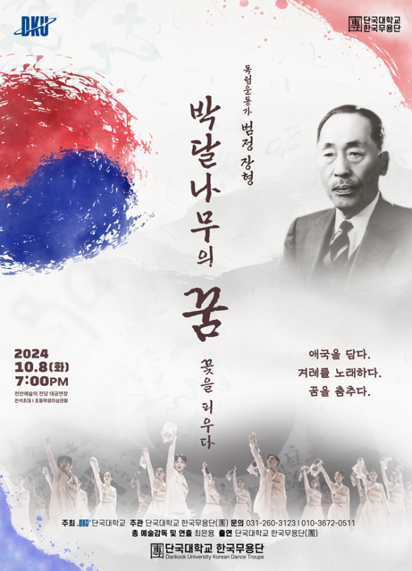 단국대학교가 10월 8일(화) 천안예술의전당에서 독립운동가이자 설립자인 범정 장형 선생의 일대기를 그린 창작무용극 앙코르 공연을 선보인다.