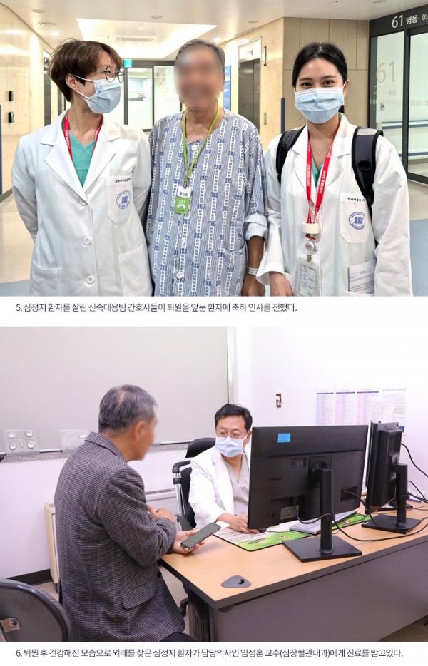 진단 결과, 박 씨는 급성 심근경색증으로 인해 심정지가 발생한 것으로 확인됐으며, 곧바로 관상동맥중재술을 받았다. 이후 중환자실에서 치료받던 박 씨는 상태가 호전되어 일반병실로 옮겼으며, 건강을 회복해 이달 5일 퇴원했다.