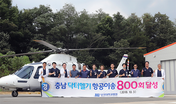 ‘하늘을 나는 응급실’로 불리는 충남 닥터헬기가 지난 10월 3일 800명의 중증응급환자를 안전하게 이송하며 800번째 ‘임무’를 완수했다. 2016년 1월 출범 이후 32개월 만의 일이다.