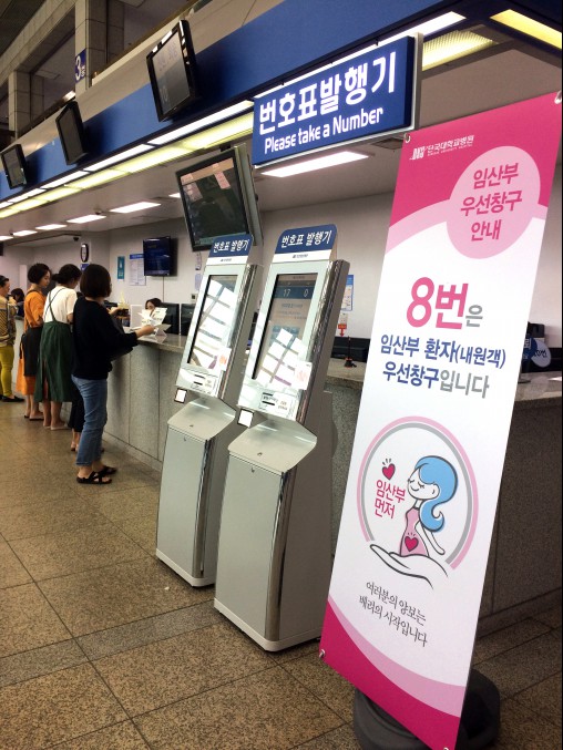 우리 병원은 지난 7월부터 2층 수납 8번 창구에 임산부 우선창구를 마련하고 운영에 들어갔다.