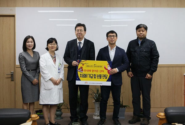 9월 21일 오후 반도체 설비회사인 세메스(SEMES)의 임직원이 우리 병원을 방문해 백혈병소아암으로 치료에 어려움을 겪고 있는 어린이의 치료비 성금 1,000만 원과 소아암 어린이들을 위한 추석선물비 50만 원을 (사)한국백혈병소아암협회 충청지회(지회장 박우성)에 전달했다.