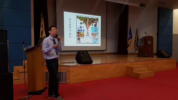 5월 8일에는 내분비대사내과 유원상 교수가 수신면에 있는 유니슨이테크(주)를 방문하여 근로자 100여 명을 대상으로 ‘대사증후군의 이해와 관리방법’을 주제로 건강강좌를 진행했다. 이 날 강의는 콜레스테롤, 혈압, 혈당 등이 복합적으로 이상징후가 있을 때 진단되는 대사증후군에 대해 발생원인과 일상관리에 대해 알기 쉽게 이루어져 많은 관심을 받았다.