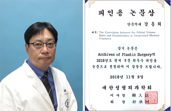 성형외과 강동희 교수, 대한성형외과학회 최우수 피인용 논문상 수상