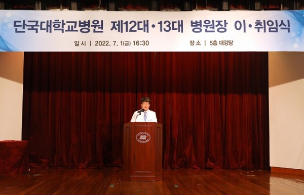 신임 이명용 병원장은 취임사에서 “장기간 이어진 코로나19 상황에서도 암센터 개원을 비롯해 병원을 훌륭히 이끌어주신 전임 김재일 병원장과 집행부를 비롯해 각자의 자리에서 최선을 다하고 있는 전 교직원에게 감사와 존경의 마음을 전한다”라고 말했다.