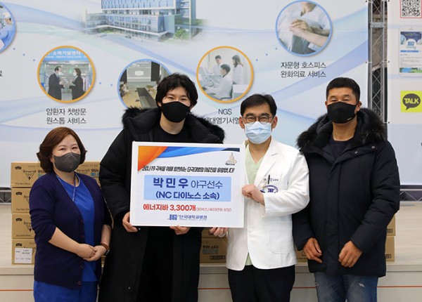 2020년 2월, 국내 첫 발병환자를 시작으로 만 2년 째 접어들고 있는 코로나19 상황이 여전히 지속되고 있는 가운데 확진자 치료에 여념이 없는 우리 병원 의료진들을 향한 응원의 메시지가 계속되고 있다. 지난해 12월 15일에는 프로야구 NC다이노스 소속의 박민우 선수가 병원을 직접 찾아와 에너지바 3300개를 전달했다.