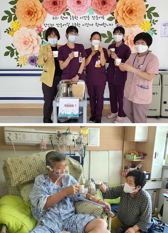병동간호사들이 핸드드립으로 직접 내린 원두커피나 차를 입원 중인 환자와 보호자들에게 전달해 드리고 쾌유를 바라는 응원을 전했다. 앞으로도 커피데이는 매주 1회 진행될 예정이다.