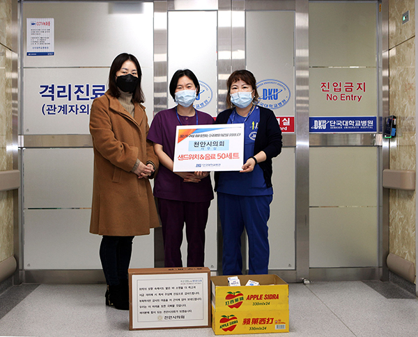 [천안시의회에서도 고생하는 의료진을 위해 간식을 보내주셨습니다.]