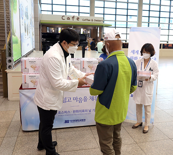 ‘아픔을 덜고 마음을 채우다’라는 슬로건으로 열린 이번 캠페인에서 환자, 보호자 등 내원객을 대상으로 호스피스 완화의료 Q&A 안내 리플렛과 홍보 물품을 배부했다.