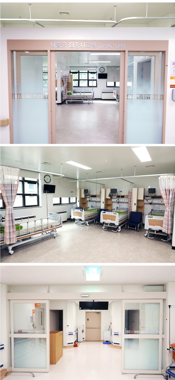 특히 지난 2020년 9월부터 급성기 뇌졸중 환자를 위해 4개의 병상으로 운영되던 뇌졸중 집중치료실 병상을 추가하여 6인실로 넓고 쾌적한 통합병실로 운영하게 되었다. 뇌졸중 집중치료실에서는 발생 1주일 이내(통상 48~72시간 이내)의 급성기 환자나 혈관중재술이나 뇌혈관수술 전후 상태인 환자를 전문 의료인력이 24시간 관찰하여 신속한 대처를 통해 증상의 악화를 방지하고 합병증을 최소화하여 환자의 예후를 향상시킨다.