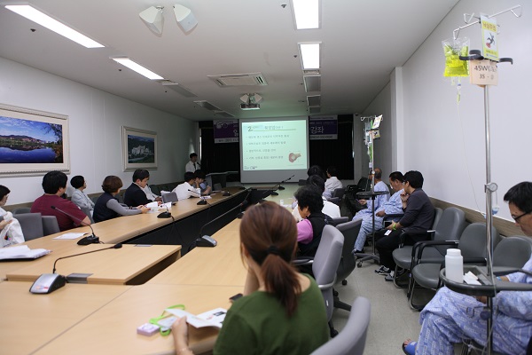 11월 15일에는 ‘2017 세계 췌장암의 날’을 기념하는 ‘일반인을 위한 췌장암 건강강좌’가 5층 소회의실에서 열렸다. 환자와 보호자, 일반인 등 약 50여명이 참석한 가운데 소화기내과 김홍자 교수의 인사말에 이어 ▲췌장이란?(외과 송상현 교수), ▲췌장암 바로알기(소화기내과 최준호 교수), ▲질의응답 순으로 진행됐다.