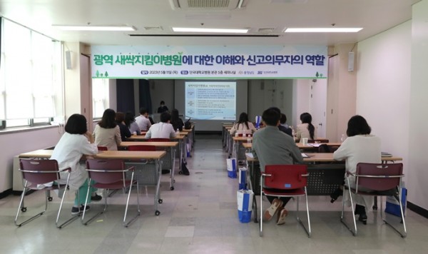 충남 아동학대 전담의료기관(광역새싹지킴이병원)으로 지정받은 단국대병원(병원장 이명용)이 11일 병원 5층 대강당에서 현판식 및 간담회 등을 열고 본격적인 운영에 들어갔다. 현판식 후 ‘새싹지킴이병원의 역할과 아동학대 대응 유관기관과의 협력체계 논의’에 대한 간담회가 이어졌으며, 오후에는 ‘광역새싹지킴이병원에 대한 이해와 신고의무자의 역할’을 주제로 실무자 교육도 함께 진행됐다.