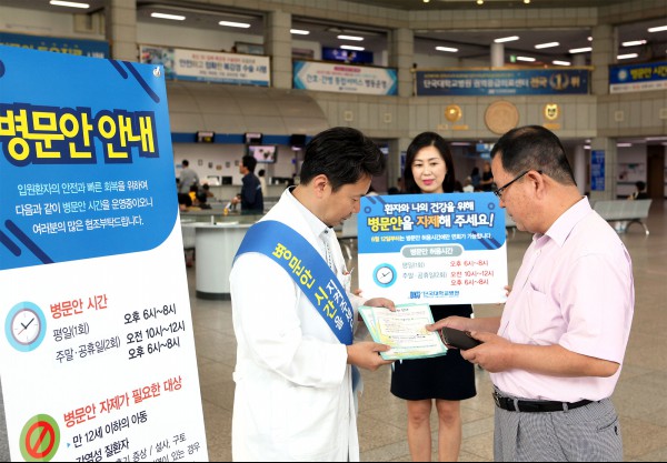 박우성 병원장은 “메르스 이후 우리나라의 관행적인 병문안 제도가 조금씩 변화하고는 있지만 병문안에 대한 국민적인 인식이 부족하고, 신종 감염병의 출현 및 다재내성균주의 꾸준한 증가 등으로 인해 국가 차원에서 안전한 병원환경에 대한 대책이 절실했다”고 설명했다. 이어 “병문안 문화개선을 위해서 환자와 보호자, 그리고 방문객들의 동참이 가장 중요한 만큼 단국대병원을 찾는 내원객들의 적극적인 동참”을 부탁했다.