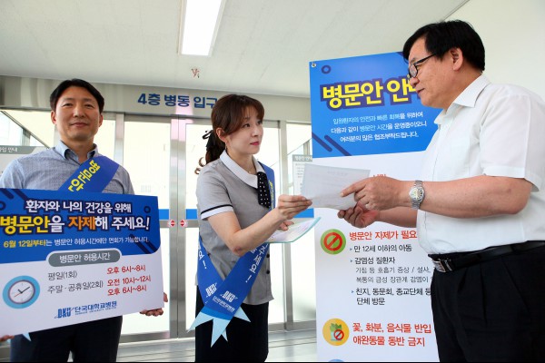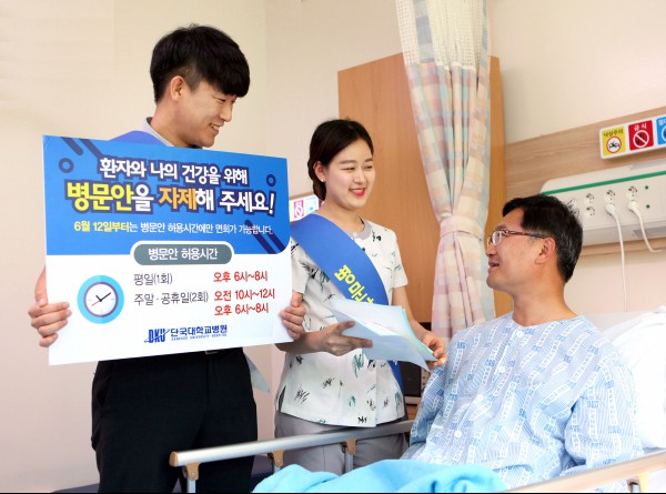 단국대병원은 6월 12일부터 면회시간을 제외하고는 모든 병동에 병문안객의 출입을 통제하기 시작했으며, 이에 앞서 6월 초부터 입원환자와 내원객을 대상으로 캠페인 및 홍보물, 병원 내 안내방송 등을 통해 홍보해왔다.