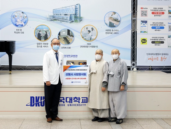 성불사 사찰음식팀은 병원을 방문해 “코로나19의 최전선에서 고군분투하고 있는 단국대병원 의료진들에게 응원의 마음을 전하고자 싶어 작은 간식도시락을 준비했다. 우리의 마음이 전달되기 바라며 코로나19가 종식되는 날까지 힘내서 치료에 임해달라”고 전했다.