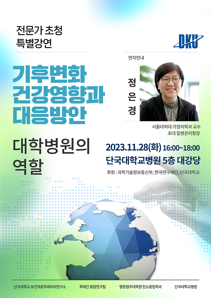 [11.28(화)] 정은경 초대 질병관리청장 초청 특별강연 > 병원소개 > 병원소식 > 공지사항 | 사랑이 숨쉬는 인술의 요람 - 단국대학교병원 홈페이지입니다.