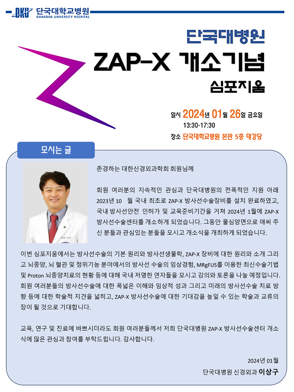 [1.26] 단국대병원 ZAP-X 개소기념 심포지움 안내
