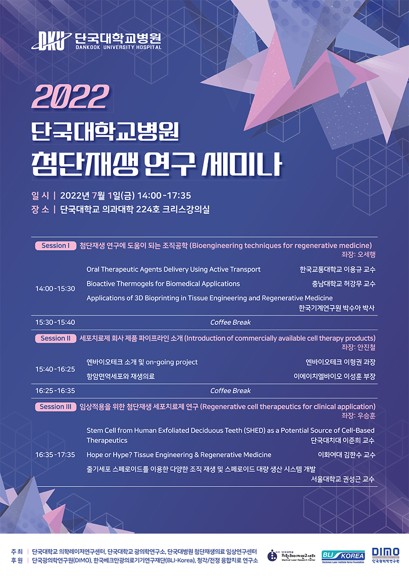 2022 단국대학교병원 첨단재생 연구 세미나 페이지 정보 작성자 |관리자 작성일 |2022-06-21 10:30 조 회 |7,416회 댓 글 |0건 관련링크 이전글 다음글 목록 본문 이전글 다음글 목록