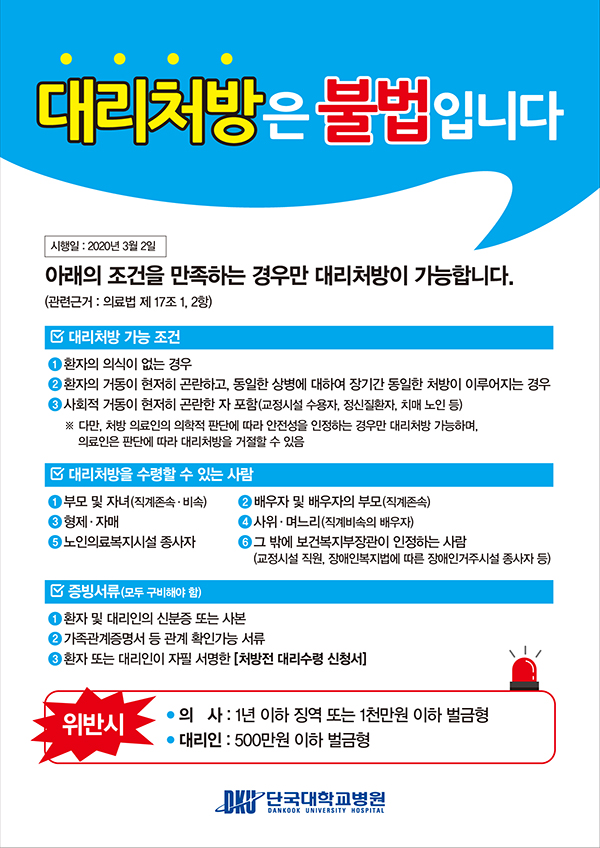 아래의 조건을 제외하고 대리처방은 불법입니다 페이지 정보 작성자 |관리자 작성일 |2021-04-06 17:22 조 회 |11,049회 댓 글 |0건 관련링크 이전글 다음글 목록 본문 이전글 다음글 목록