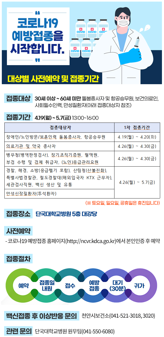 코로나19 예방접종을 시작합니다. 페이지 정보 작성자 | 작성일 |2021-04-20 10:48 조 회 |11,359회 댓 글 |0건 관련링크 이전글 다음글 목록 본문 이전글 다음글 목록