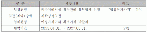 폐수처리시설 위탁관리 용역업체 선정 입찰
