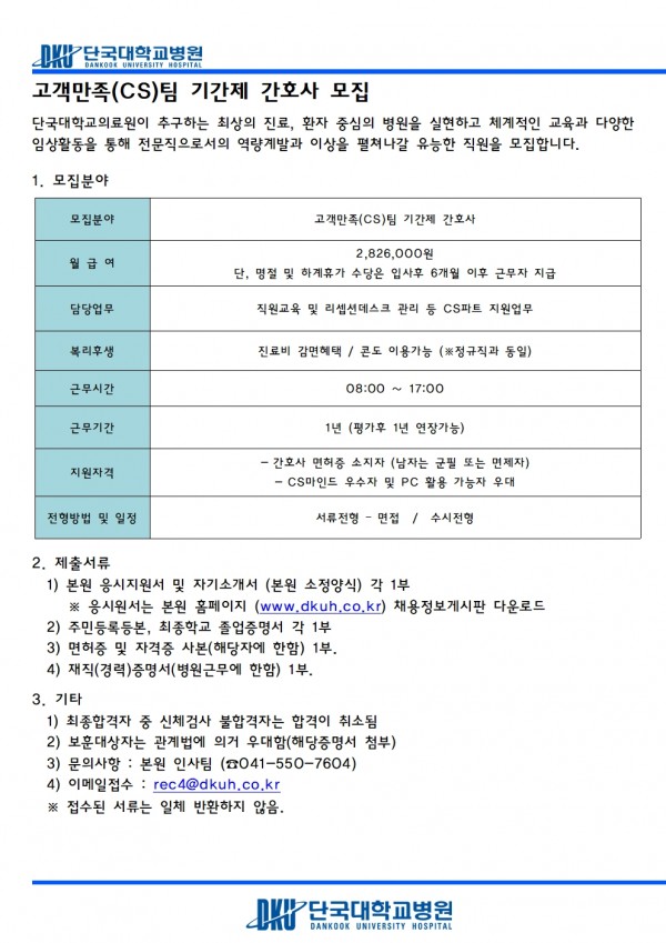 고객만족(CS)팀 기간제 간호사 모집