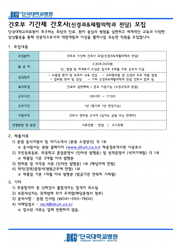 간호부 기간제 간호사(신경과 & 재활의학과 전담) 모집