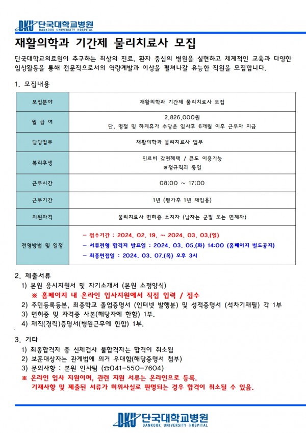 재활의학과 기간제 물리치료사 모집 페이지 정보 작성자 | 김혜원 작성일 | 작성일24-02-16 18:36 조회 | 13,297회 댓글 | 0건 관련링크 이전글 다음글 목록 본문 이전글 다음글 목록