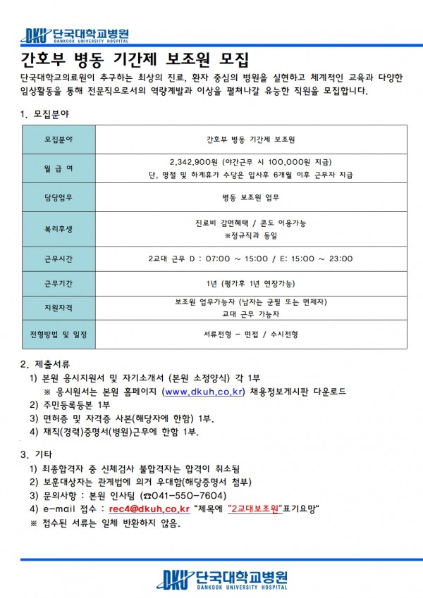 간호부 병동 기간제 보조원 모집