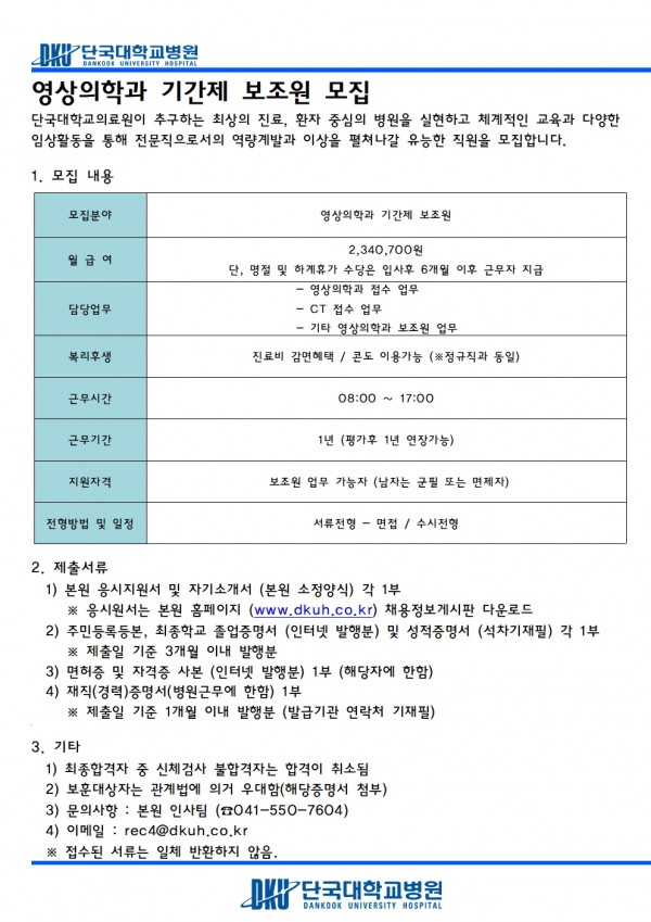 영상의학과 기간제 보조원 모집