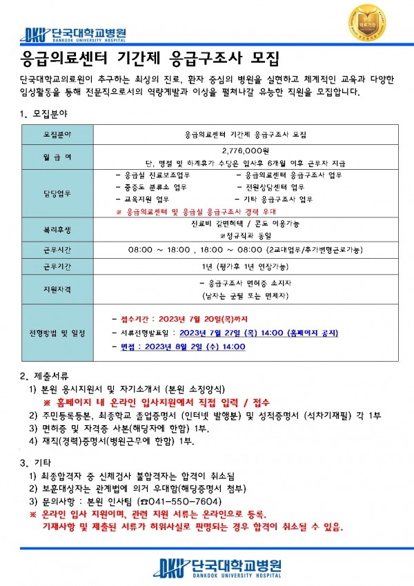 응급의료센터 기간제 응급구조사 모집 페이지 정보 작성자 | 김혜원 작성일 | 작성일23-07-10 17:15 조회 | 20,619회 댓글 | 0건 관련링크 이전글 다음글 목록 본문 이전글 다음글 목록