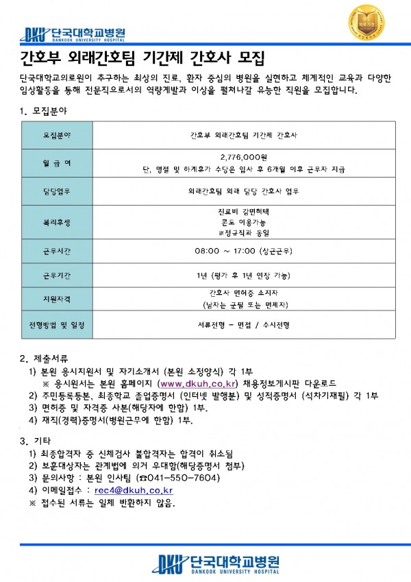 간호부 외래간호팀 기간제 간호사 모집