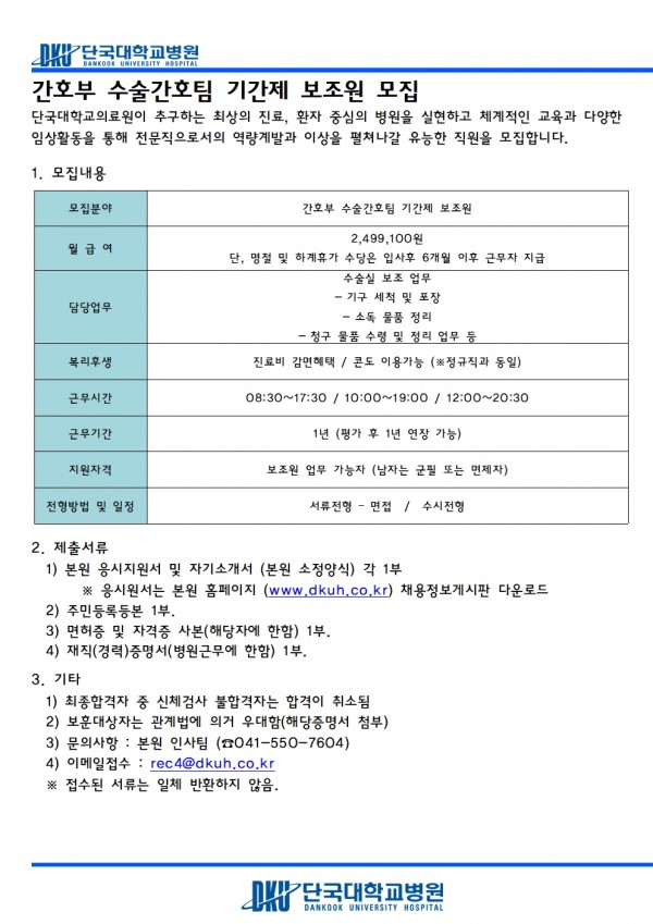 간호부 수술간호팀 기간제 보조원 모집