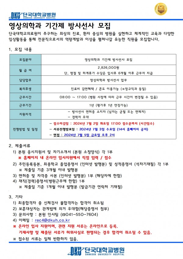 영상의학과 기간제 방사선사 모집 페이지 정보 작성자 | 이한동 작성일 | 작성일24-06-26 11:46 조회 | 9,661회 댓글 | 0건 관련링크 이전글 다음글 목록 본문 이전글 다음글 목록