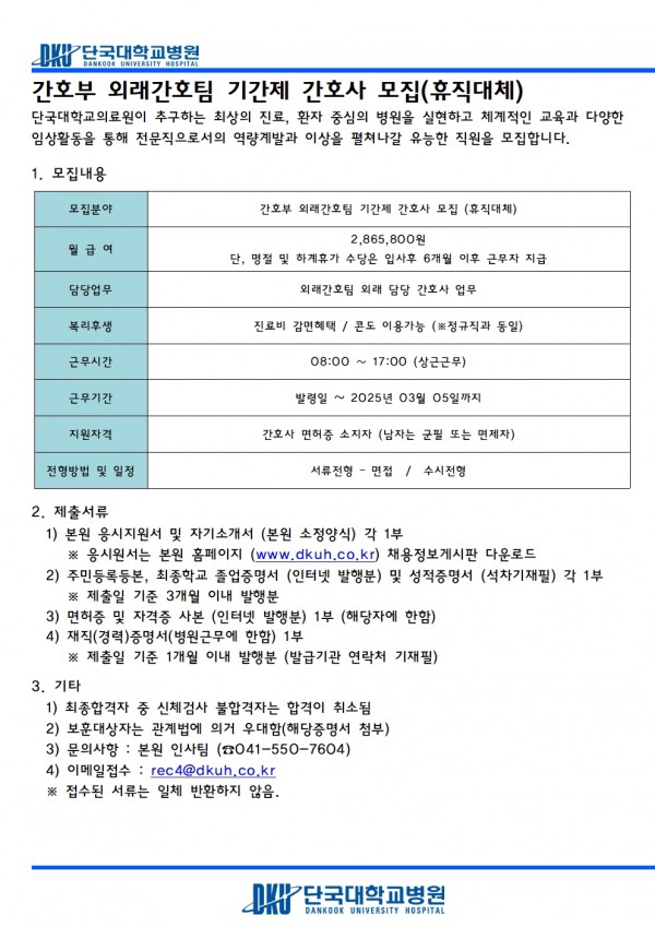 간호부 외래간호팀 기간제 간호사 모집(휴직대체)