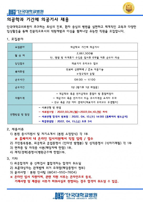 의공학과 기간제 의공기사 채용 페이지 정보 작성자 | 김혜원 작성일 | 작성일22-03-24 20:29 조회 | 19,298회 댓글 | 0건 관련링크 이전글 다음글 목록 본문 이전글 다음글 목록