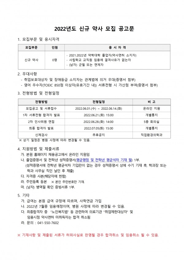 2022년도 신규 약사 모집 페이지 정보 작성자 | 장회진 작성일 | 작성일22-05-30 13:49 조회 | 18,482회 댓글 | 0건 관련링크 이전글 다음글 목록 본문 이전글 다음글 목록