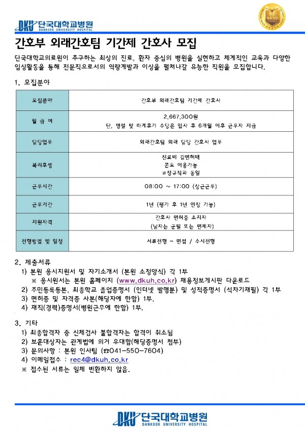 간호부 외래간호팀 기간제 간호사 모집