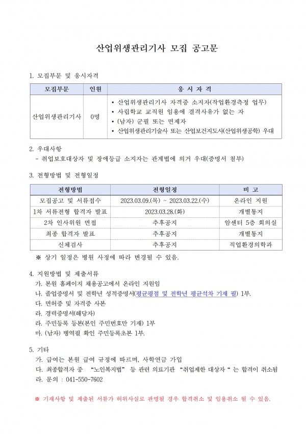 산업위생관리기사 채용공고 페이지 정보 작성자 | 장회진 작성일 | 작성일23-03-03 16:46 조회 | 30,732회 댓글 | 0건 관련링크 이전글 다음글 목록 본문 이전글 다음글 목록