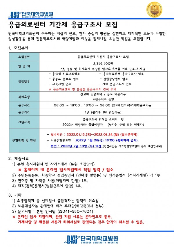 응급의료센터 기간제 응급구조사 모집 페이지 정보 작성자 | 작성일 | 작성일22-01-13 19:04 조회 | 17,794회 댓글 | 0건 관련링크 이전글 다음글 목록 본문 이전글 다음글 목록