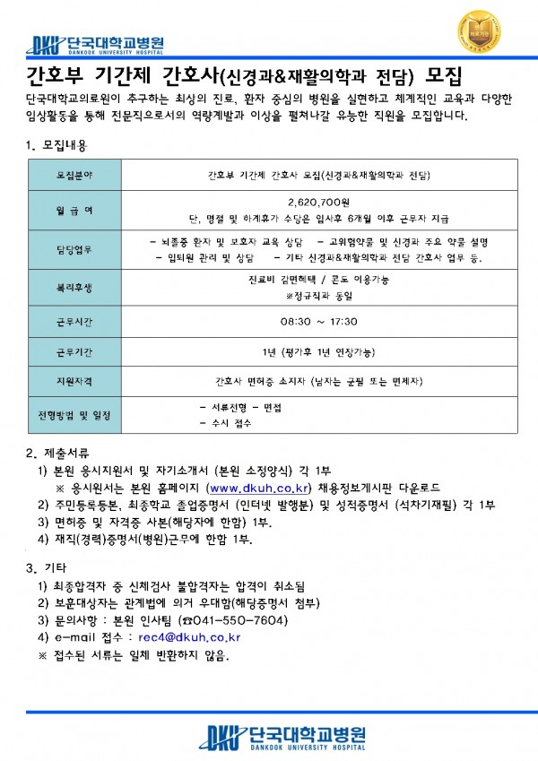 간호부 기간제 간호사(신경과&재활의학과 전담) 모집