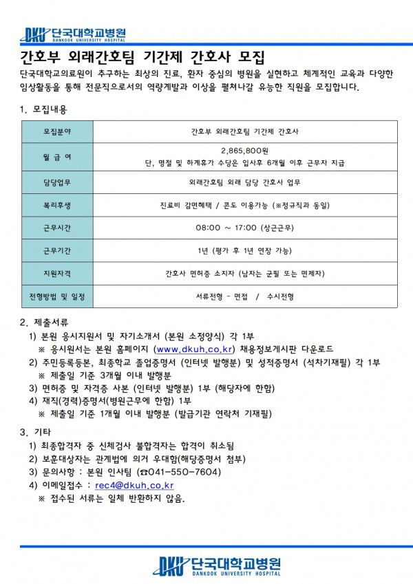 간호부 외래간호팀 기간제 간호사 모집