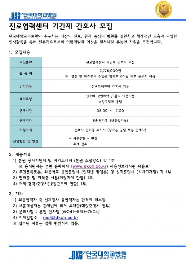 진료협력센터 기간제 간호사 모집