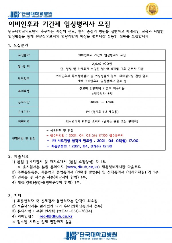 이비인후과 기간제 임상병리사 모집 - 일정공지