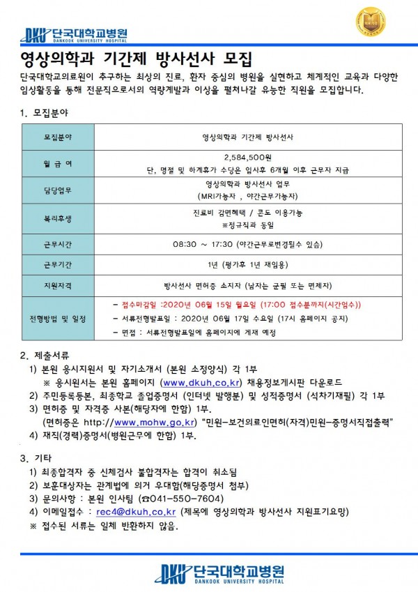 영상의학과 기간제 방사선사 모집