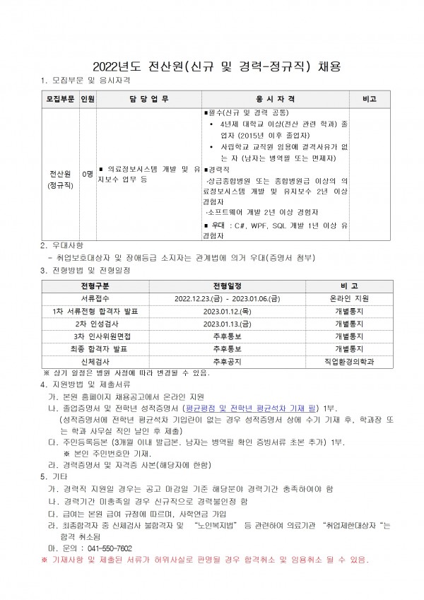 전산원(신규 및 경력- 정규직)채용 페이지 정보 작성자 | 장회진 작성일 | 작성일22-12-20 09:50 조회 | 21,886회 댓글 | 0건 관련링크 이전글 다음글 목록 본문 이전글 다음글 목록